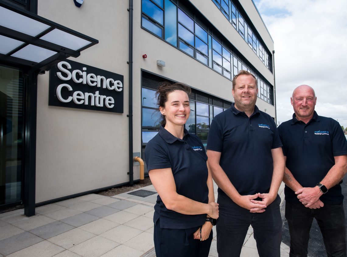 A new three-storey science block building, a single-storey dining hall extension and internal refurbishments to ground floor classrooms and staircase areas, completed in September 2025.